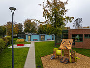 Unsere Einrichtung ist in Modulbauweise errichtet und liegt auf dem Gelände des Berufskolleg in Simmerath, direkt neben der Dreifachturnhalle. Die hellen und freundlichen Räume laden zum Spielen, Entdecken und Lernen ein. Bei uns lernen Kinder mit und ohne Förderbedarf gemeinsam. Unser großes Außengelände lädt die Kinder zum laufen, klettern, fahren und frei bewegen ein. Uns ist gruppenübergreifendes Spielen wichtig. So können die Kinder vielfältige Kontakte knüpfen und neben festen Angeboten ihren Interessen nachgehen.
