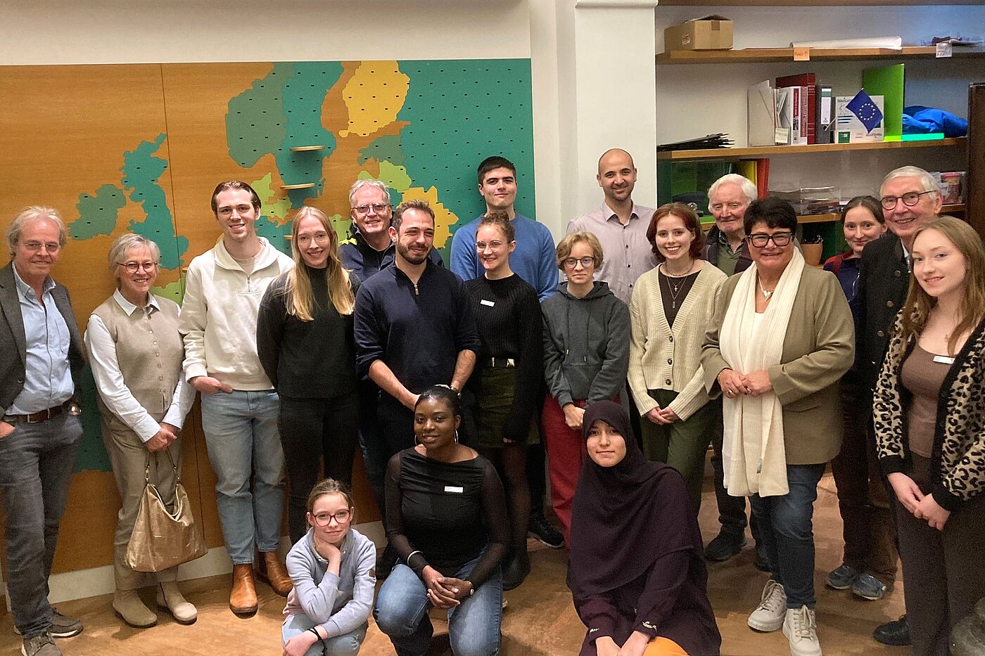 „Es war toll zu sehen, wie schnell alle ins Gespräch gekommen sind und wie das auch generationenübergreifend funktioniert hat“, so Nathalie Afrifa (18). „Die jüngste Teilnehmerin ist 12 Jahre alt, der älteste 78 und sie alle sprechen über Europa und seine Werte.“ Nathalie macht ihren Freiwilligendienst im städteregionalen Bildungsbüro und hat die Veranstaltung gemeinsam mit ihren JUPA-Kolleginnen Ruth Paschmanns und Lisa Tretteler sowie dem Aachener Europe Direct-Team auf die Beine gestellt. Die Partner haben zwei bewährte Veranstaltungsformate kombiniert: JUPA lädt regelmäßig zu „Food & Talk“ ein, wo Jugendliche in den Dialog mit Politikerinnen und Politikern kommen. Mit „Europa am Dienstag“ beleuchtet Europe Direct Aachen jeden Monat ein neues Europathema.