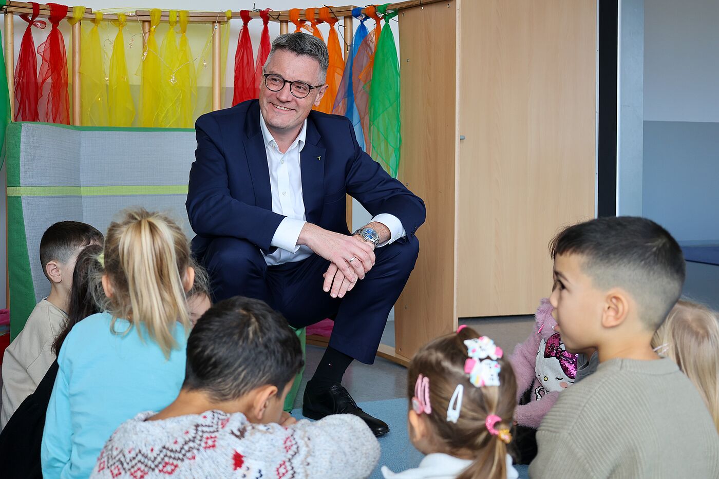 StädteRegion Aachen. Gespannte Stille macht sich in dem kleinen Raum bereit. An der Seite steht ein bunt gefülltes Bücherregal. Städteregionsrat Dr. Tim Grüttemeier schlägt vor leuchtenden Kinderaugen das Buch „Der Grüffelo“ auf. Am Bundesweiten Vorlesetag wird in vielen Kitas in der StädteRegion Aachen vorgelesen. Ziel ist es, die Lust am Lesen zu wecken, das Miteinander zu stärken und den Austausch zu fördern. Der Aktionstag steht in diesem Jahr unter dem Motto: „Vorlesen spricht deine Sprache“. Damit soll unterstrichen werden, dass jede einzelne Sprache und Stimme zählt.