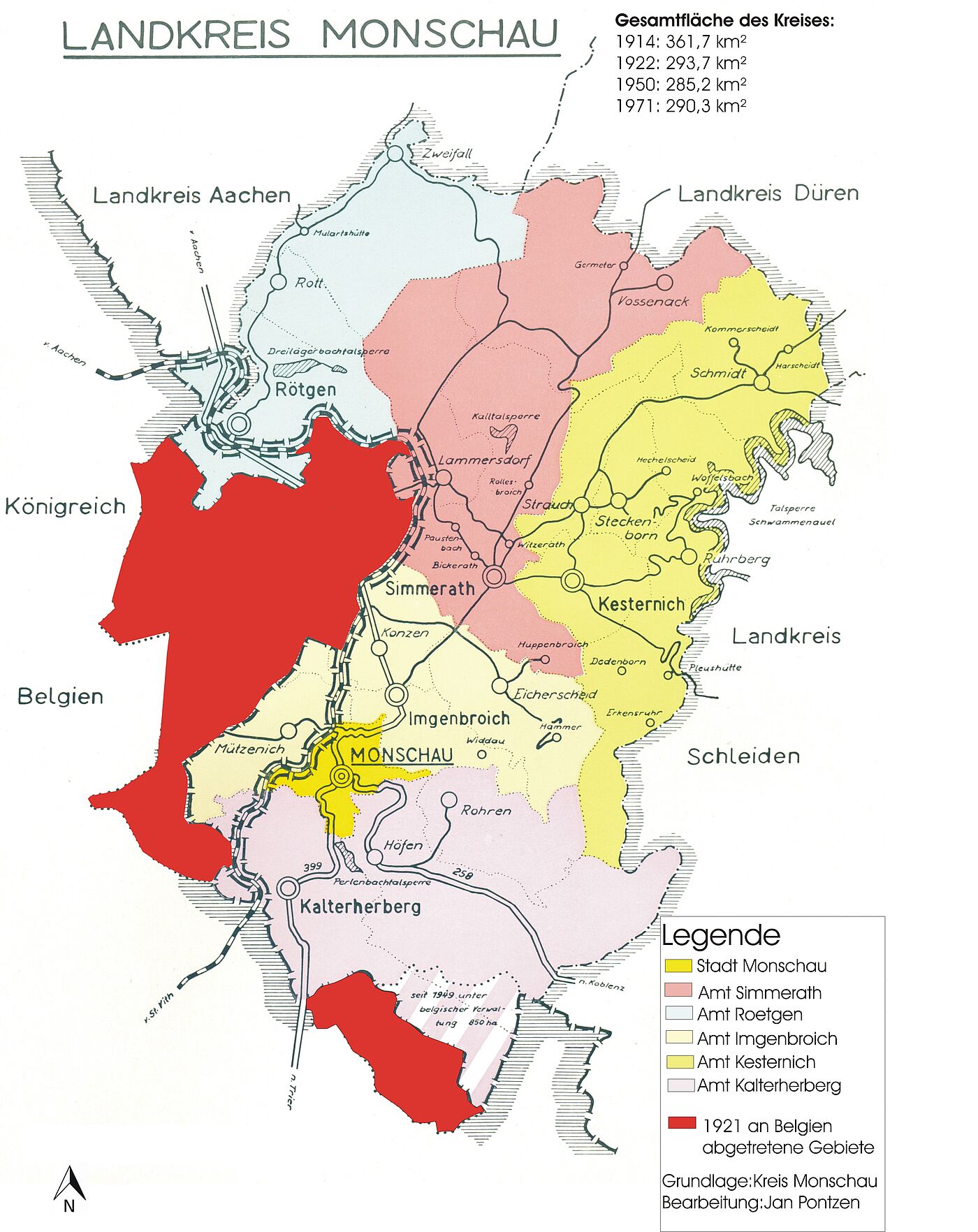Nach dem ersten Weltkrieg musste der Landkreis Monschau ein Fünftel seines Kreisgebietes an Belgien abtreten. Darunter große Teile der Vennwälder sowie der 30 Kilometer lange Bahnkörper der Vennbahn (die einzige Schienenverbindung des Landkreises). Das Nutzungsrecht für die abgetrennten Vennwälder verblieb jedoch noch bis zum Ende des 2. Weltkriegs bei den Gemeinden.