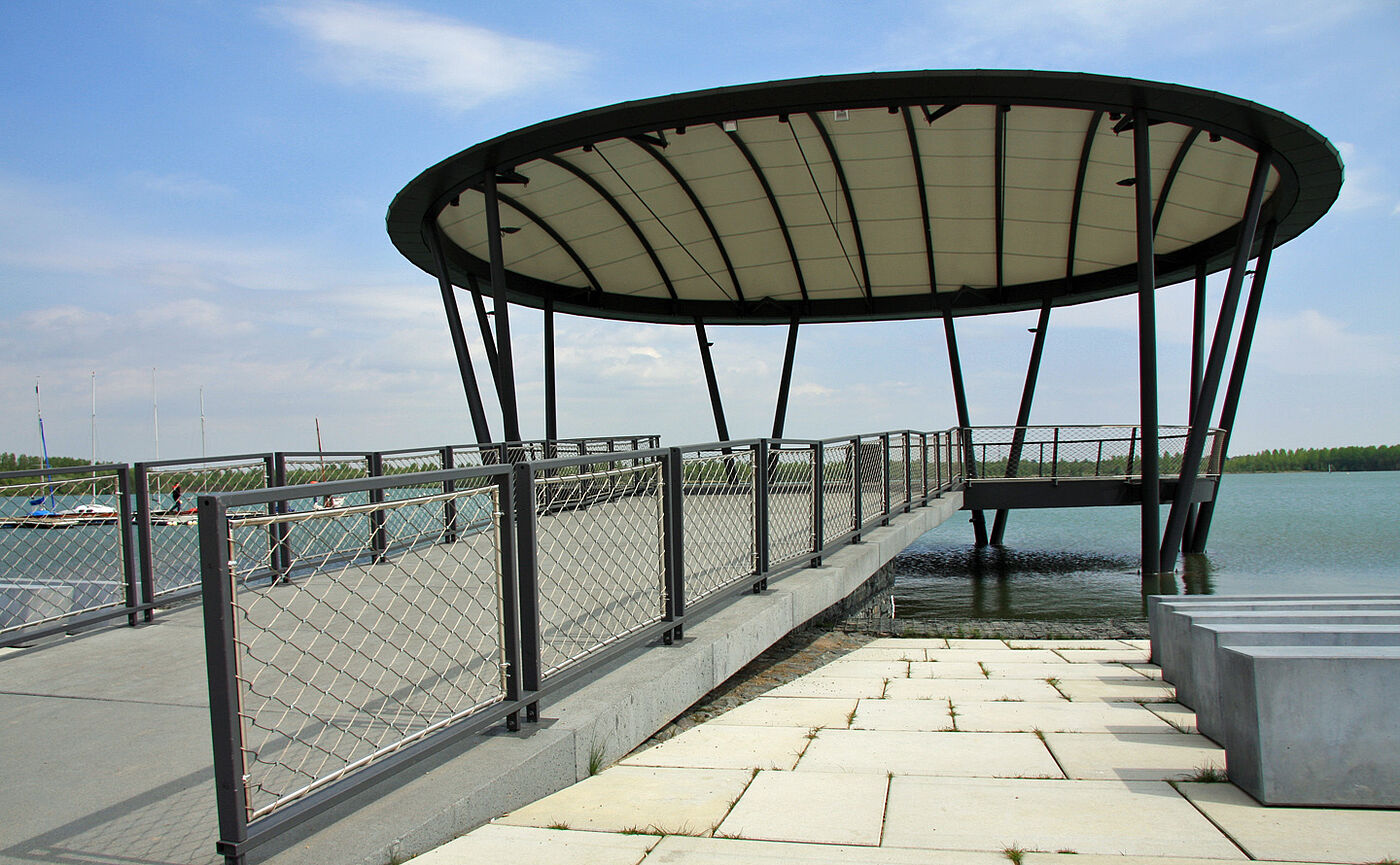 Also at the west bank of the lake something extraordinary intends to invite you to stay: here an attractive viewing platform is under construction – based on the unmistakable architecture of the spoil spreaders, which in the past where active here. Modern accommodations for clubs, a „water school“ for groups of children and youngsters, cafés, restaurants and beer gardens provide for a varied gastronomic offer. Two hotels with apartments are also planned, as well as a public golf course. A private one has long existed: The golf course House Kambach with its idyllic water castle, which accommodates a public restaurant, meets highest standards and is the venue for numerous prestigious tournaments.